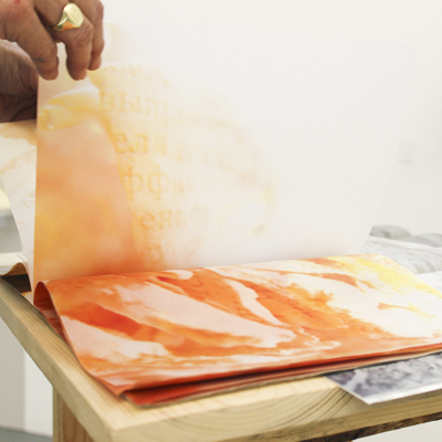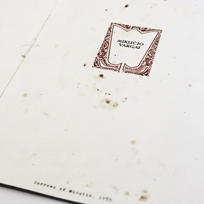 The triptych consists of three artists' books: "Mikučio vargai" (Sorrows of Mikutis), "Ugnies žiede" (In the Ring of Fire) and